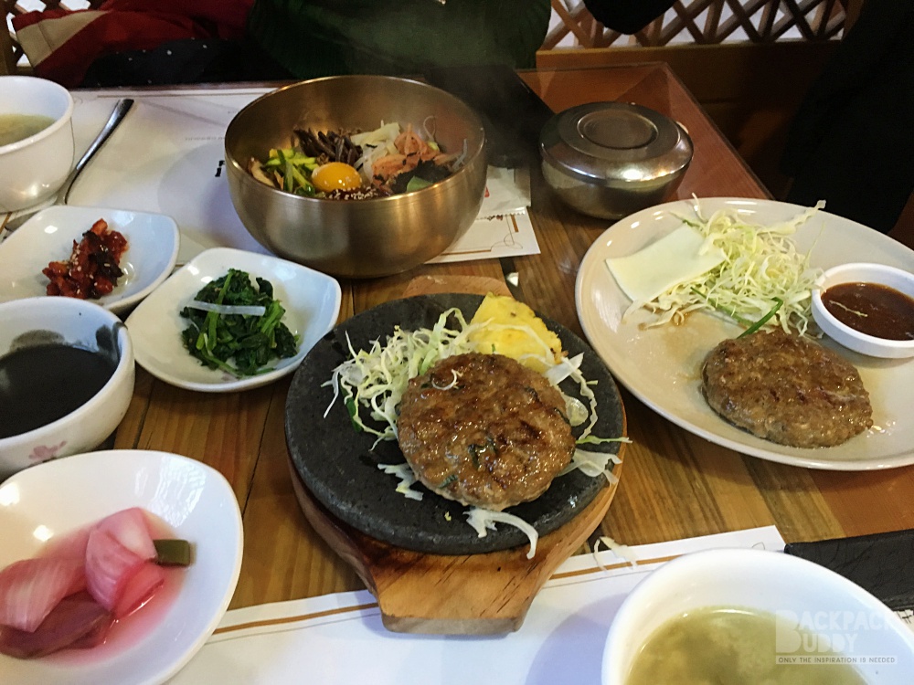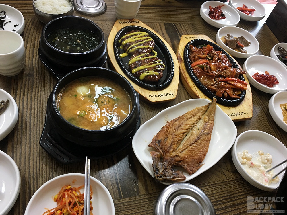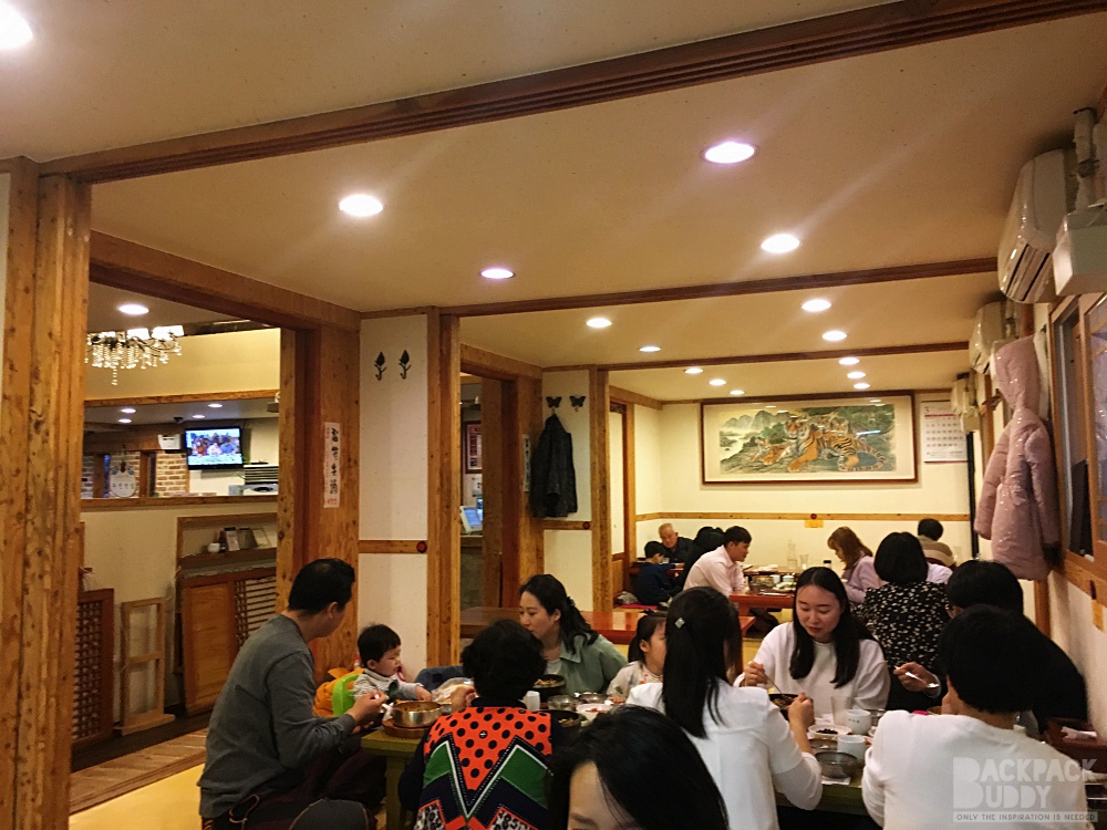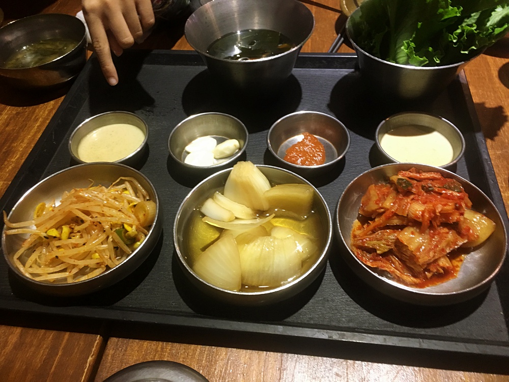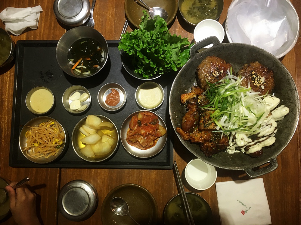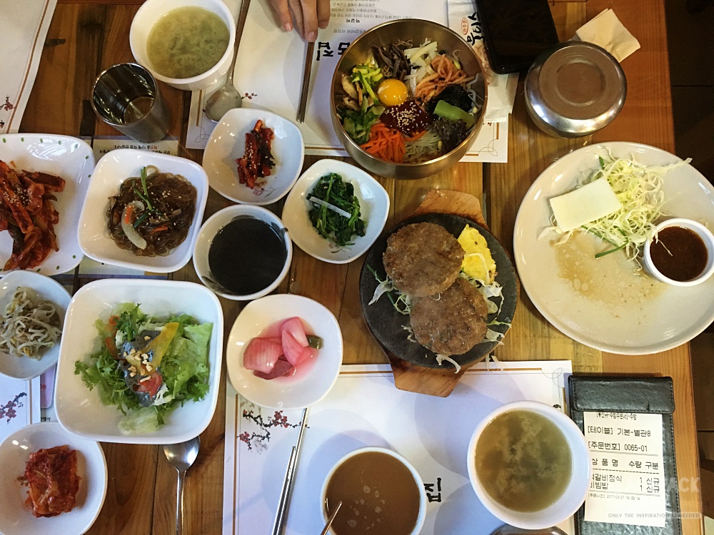 เป็นเมืองที่ร้านอาหารเยอะมากค่ะ แล้วแต่ละร้าน น่ากินมาก เพื่อนแนะนำว่า มีร้านนึง ให้เครื่องเคียง 30 อย่าง โอย ตายๆ กินเครื่องเคียงอิ่มไม่ต้องสั่งอาหารแล้วไม๊… แต่เราไม่ได้ไปร้านนั้น ไปอีกร้านนึง เดินไปไม่ไกลจาก ที่พัก ข้ามถนนใหญ่ไป ร้านนี้คนเยอะ ต่อคิวพอกรุบกริบ  ชื่อ Hanul Table เครื่องเคียงอลังการ ไม่น้อยหน้า แต่บังคับสั่งทุกคนนะคะ จะมาแบบ สั่งอย่างเดียวแล้วพกเพื่อนไปอีก 3 คนไม่ได้ ขนาดเด็กๆ ก็ไม่เว้น