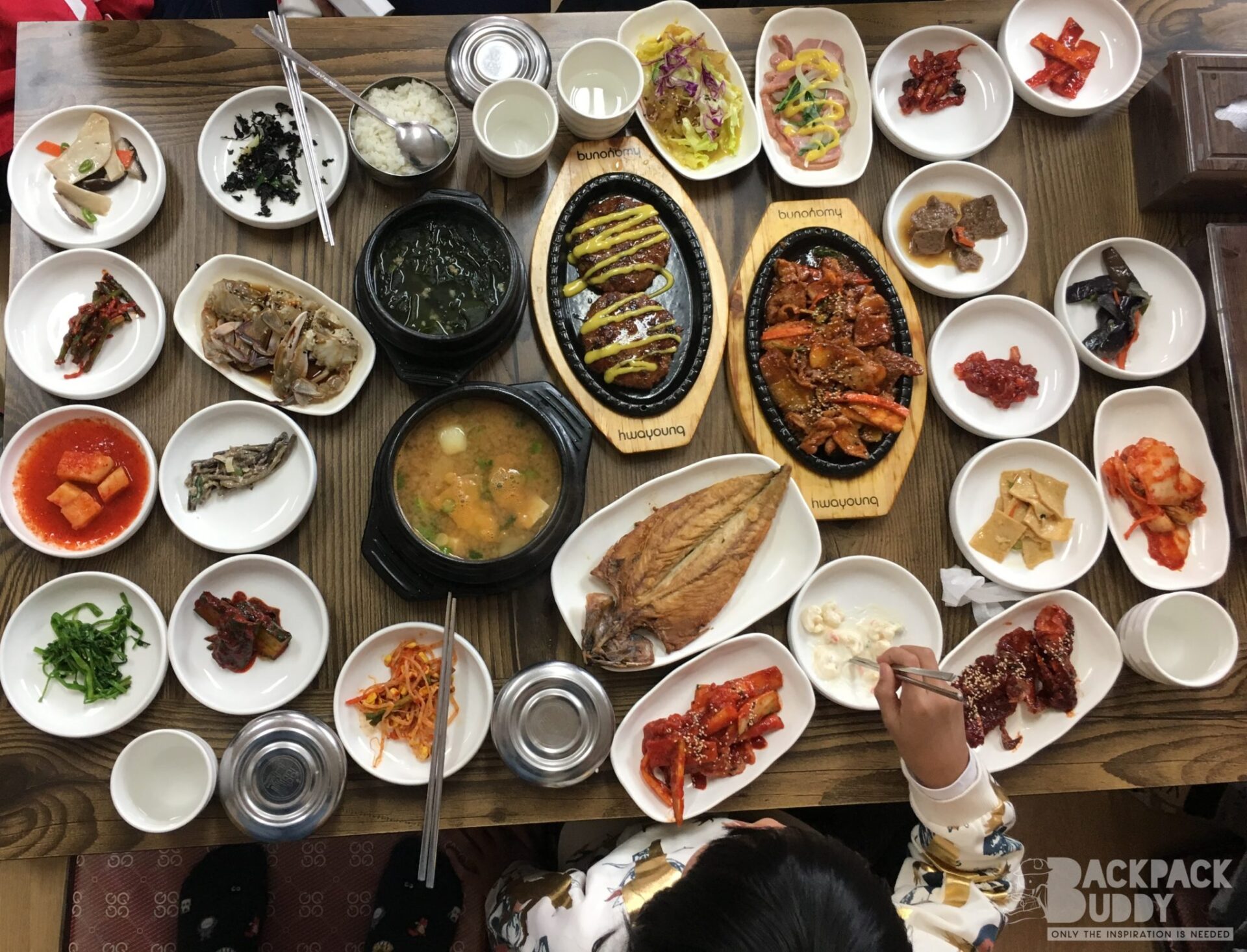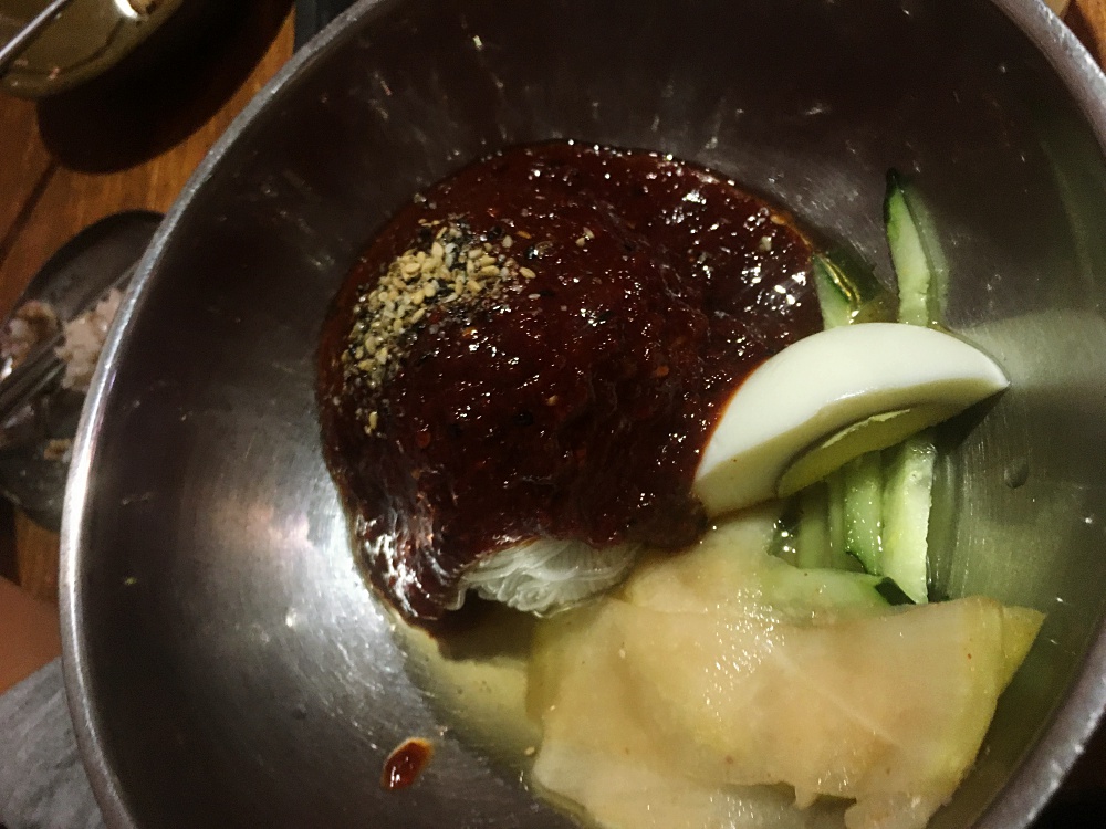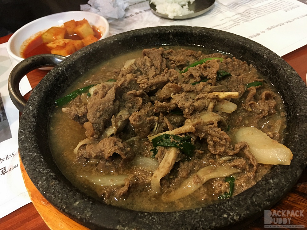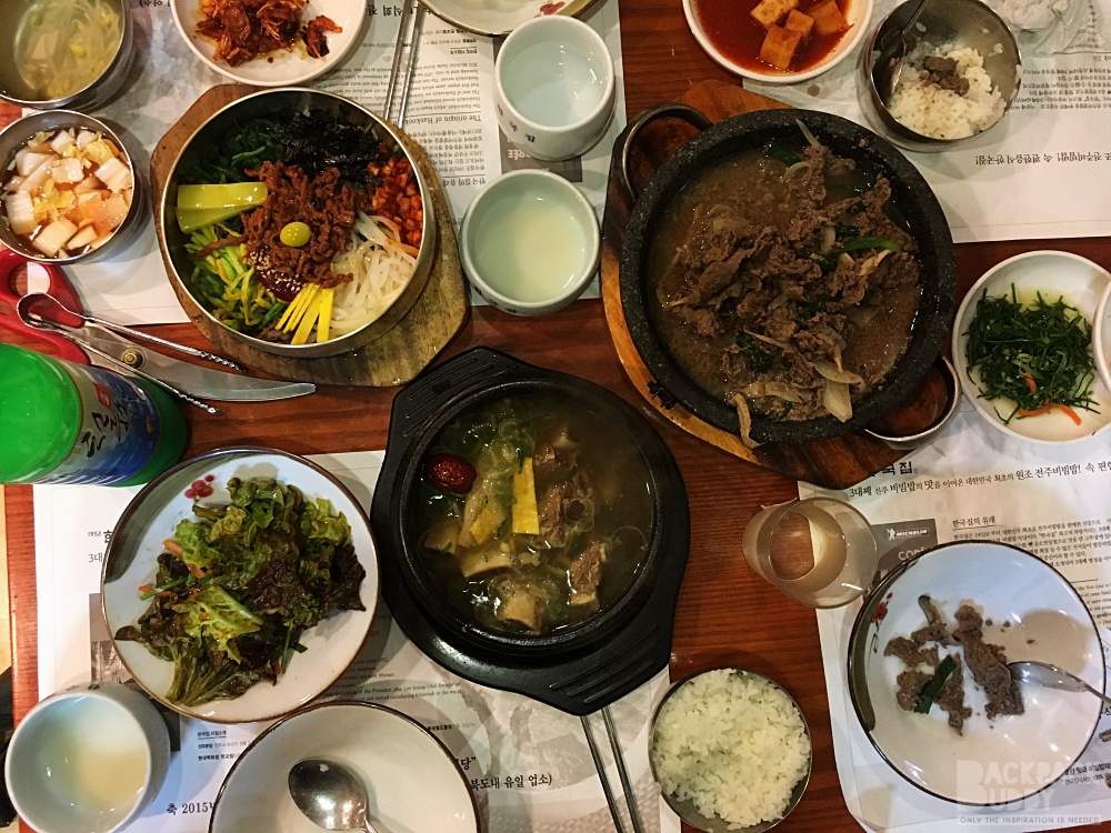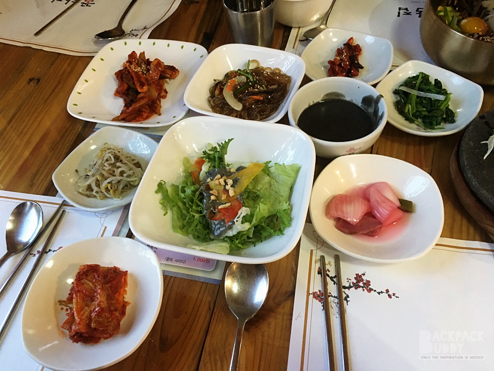 เป็นเมืองที่ร้านอาหารเยอะมากค่ะ แล้วแต่ละร้าน น่ากินมาก เพื่อนแนะนำว่า มีร้านนึง ให้เครื่องเคียง 30 อย่าง โอย ตายๆ กินเครื่องเคียงอิ่มไม่ต้องสั่งอาหารแล้วไม๊… แต่เราไม่ได้ไปร้านนั้น ไปอีกร้านนึง เดินไปไม่ไกลจาก ที่พัก ข้ามถนนใหญ่ไป ร้านนี้คนเยอะ ต่อคิวพอกรุบกริบ  ชื่อ Hanul Table เครื่องเคียงอลังการ ไม่น้อยหน้า แต่บังคับสั่งทุกคนนะคะ จะมาแบบ สั่งอย่างเดียวแล้วพกเพื่อนไปอีก 3 คนไม่ได้ ขนาดเด็กๆ ก็ไม่เว้น