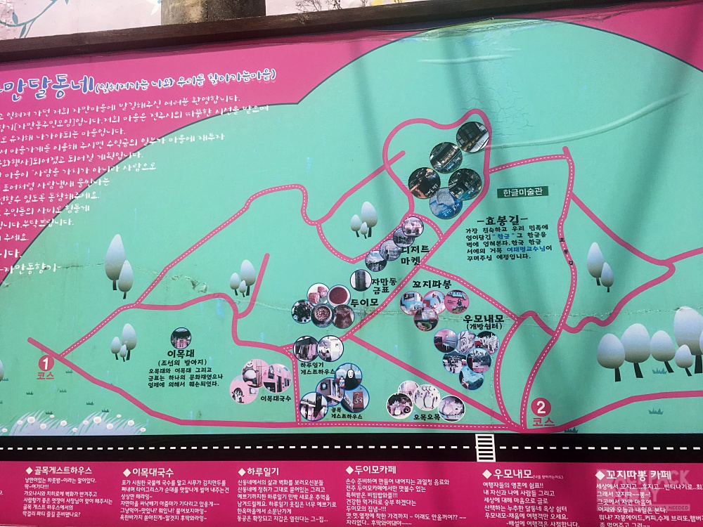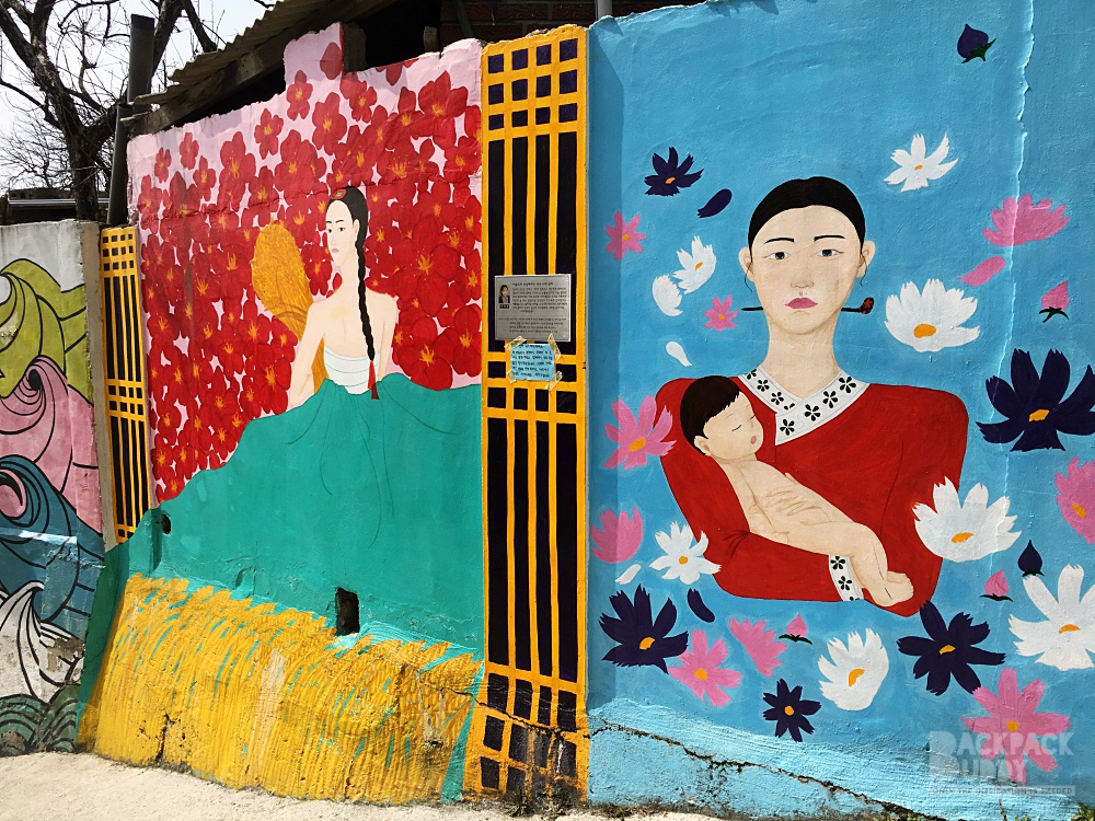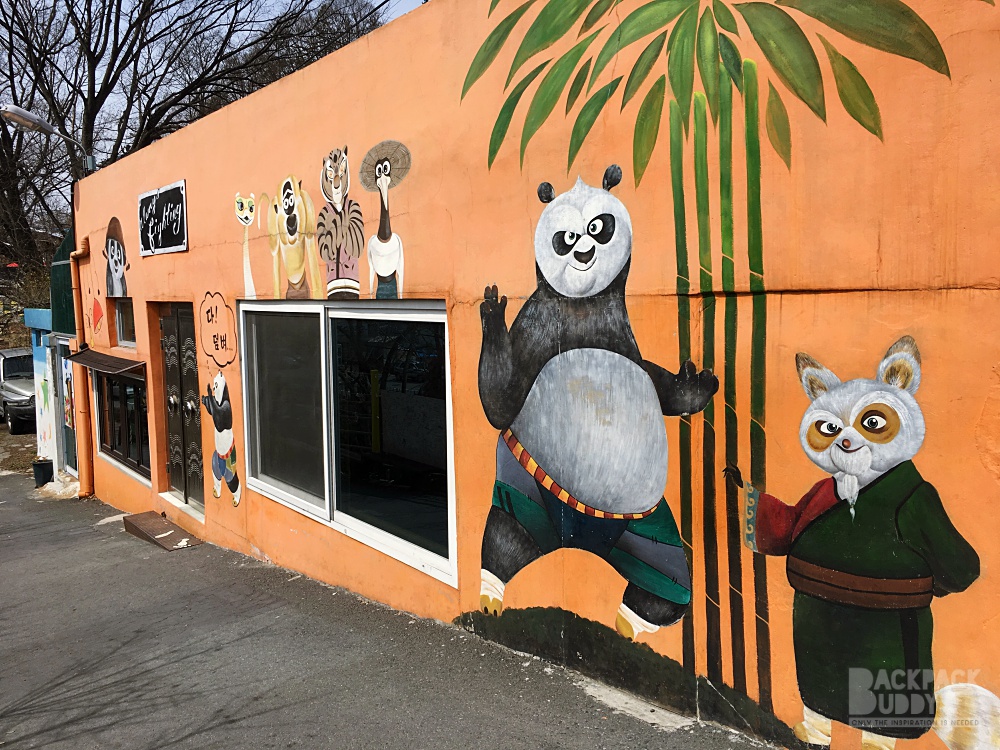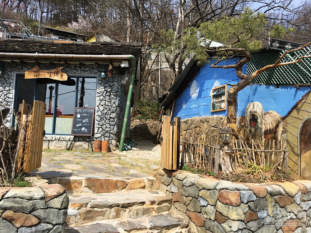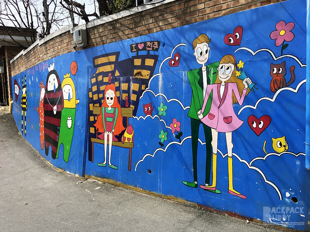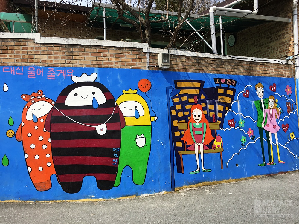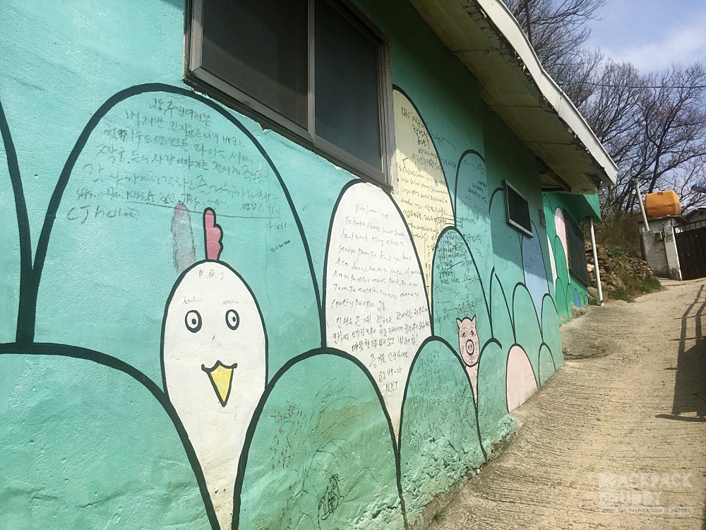 - Jaman Mural Village  เป็นหมู่บ้านบนเนินเขาที่อยู่ฝั่งตรงข้าม Omokdae เดินไปได้ค่ะ ไต่เนินพอแฮ่กๆ มีภาพเพ้นท์ตามผนัง กำแพงต่างๆ น่ารักดี มีร้านกาแฟอยู่ด้านบน แต่คิดว่าเปิดเฉพาะ เสาร์อาทิตย์นะ